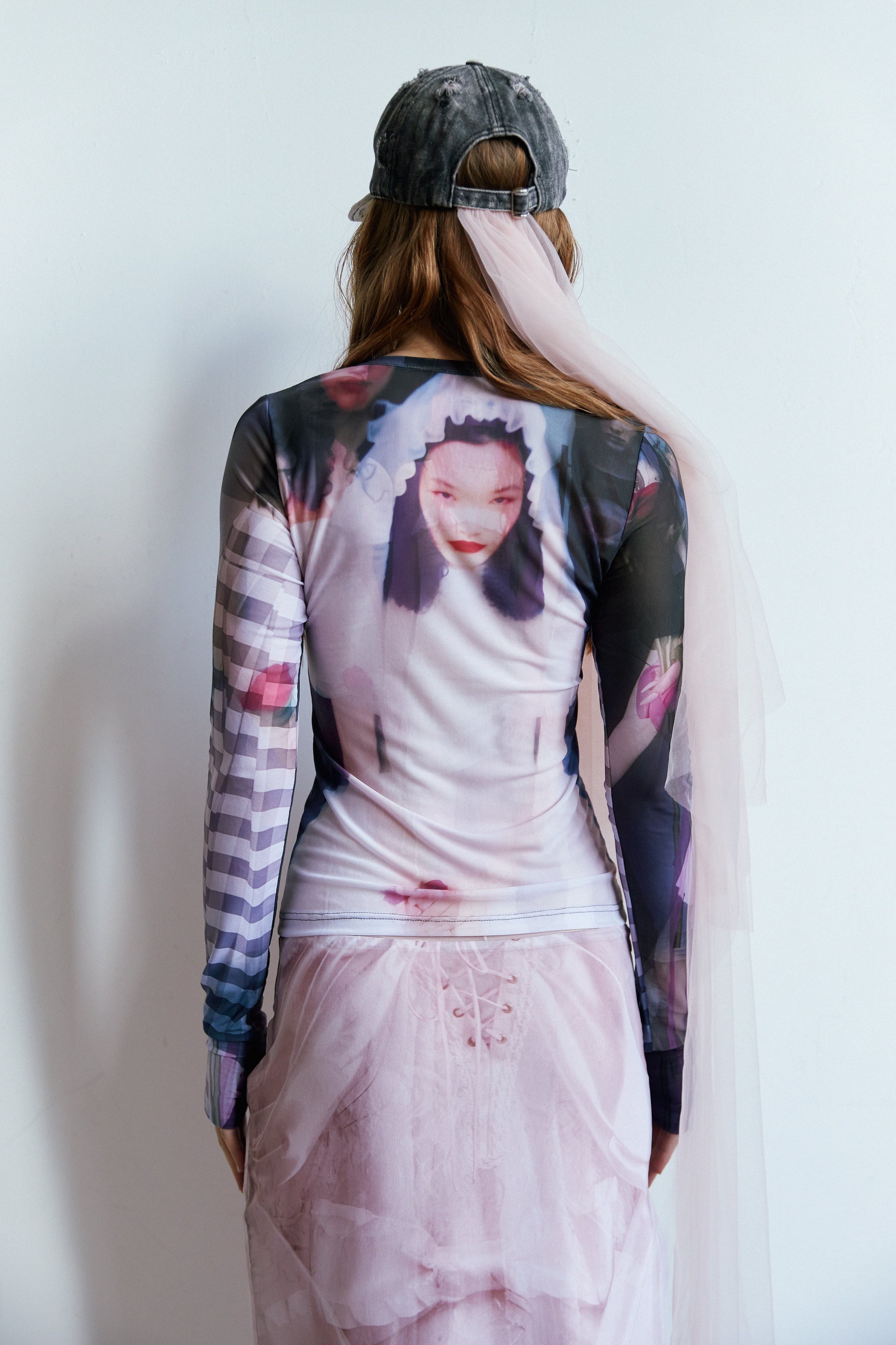 Undressed Muse Signature Asian Bride Printed Mesh Top.